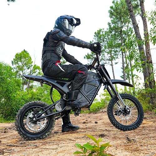 The VIPCOO H3 electric dirt bike is powered by a formidable 48V 350W motor, propelling you to a top speed of 63 km/h to conquer any terrain. Its advanced hydraulic and nitrogen suspension smooths out the toughest trails, while the full lighting system ensures safety around the clock. With responsive hydraulic disc brakes, a high-performance frame, and rugged 14"/12" tires, it delivers unmatched control and confidence on every ride.