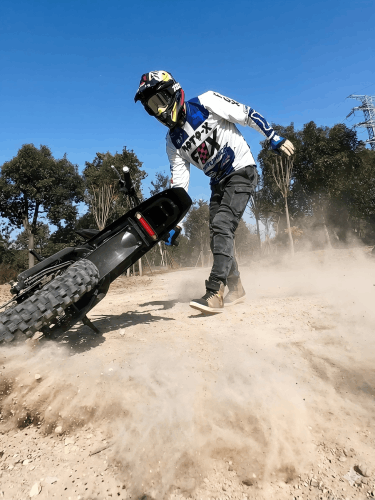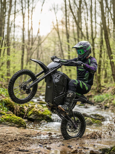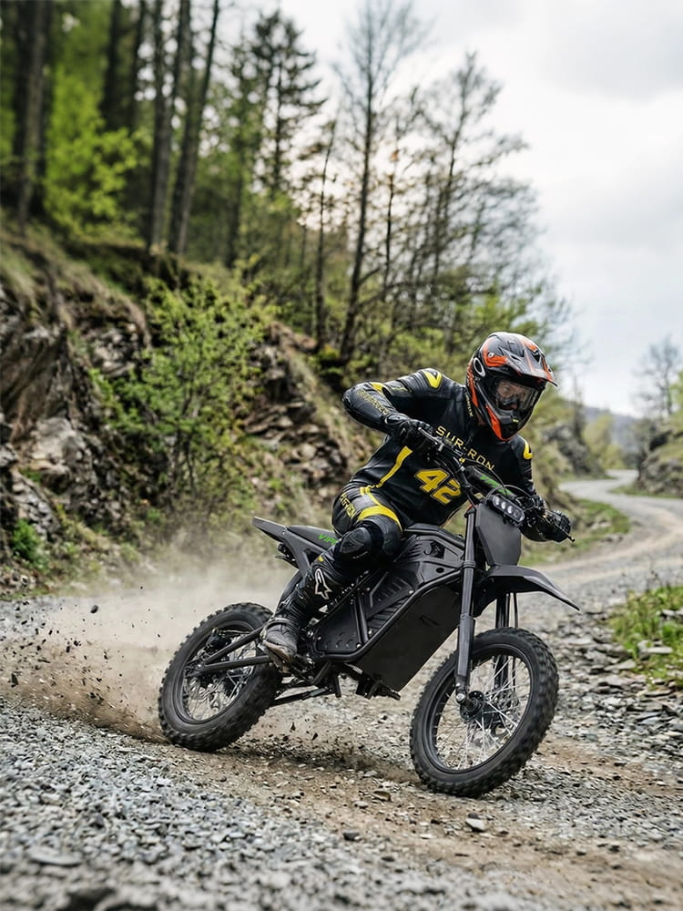 The VIPCOO H3 electric dirt bike is powered by a formidable 48V 3500W motor, propelling you to a top speed of 63 km/h to conquer any terrain. Its advanced hydraulic and nitrogen suspension smooths out the toughest trails, while the full lighting system ensures safety around the clock. With responsive hydraulic disc brakes, a high-performance frame, and rugged 14"/12" tires, it delivers unmatched control and confidence on every ride.