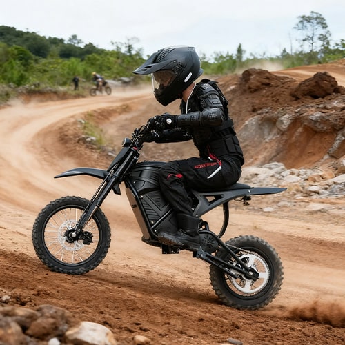 The VIPCOO H3 electric dirt bike is powered by a formidable 48V 350W motor, propelling you to a top speed of 63 km/h to conquer any terrain. Its advanced hydraulic and nitrogen suspension smooths out the toughest trails, while the full lighting system ensures safety around the clock. With responsive hydraulic disc brakes, a high-performance frame, and rugged 14"/12" tires, it delivers unmatched control and confidence on every ride.
